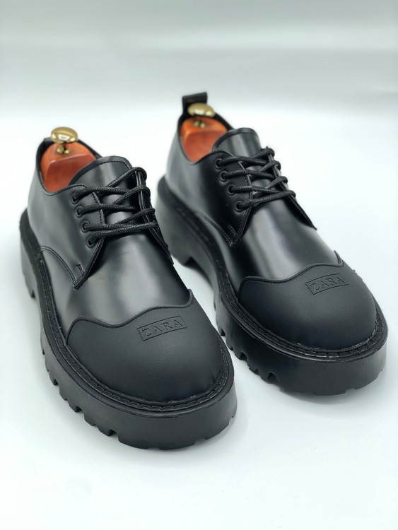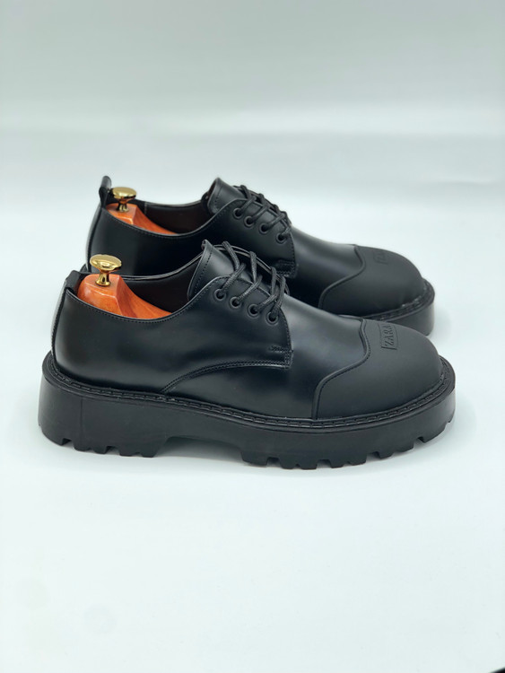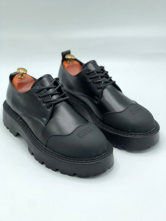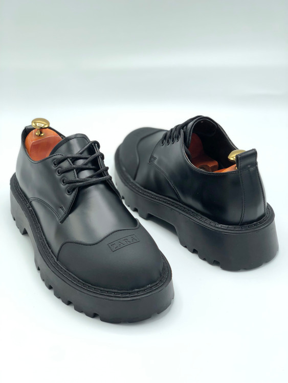 کفش کلاسیک لوفر مردانه زارا چرمی بندی لژدار مشکی کد ۶۰۳۱