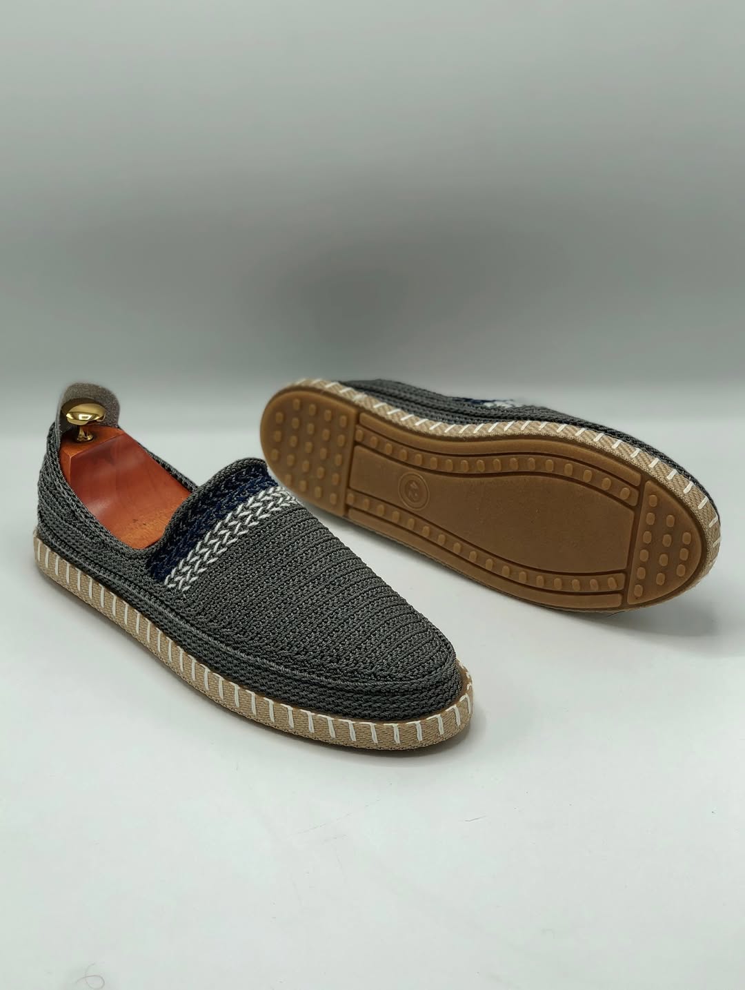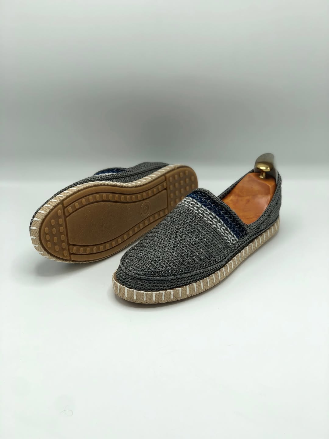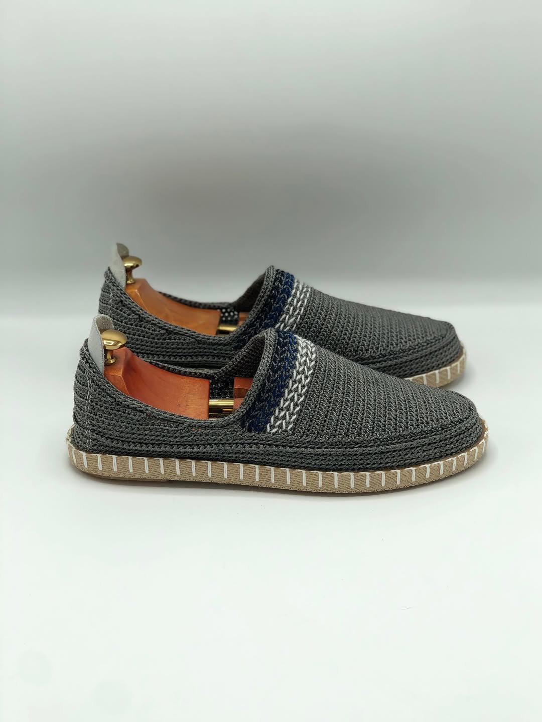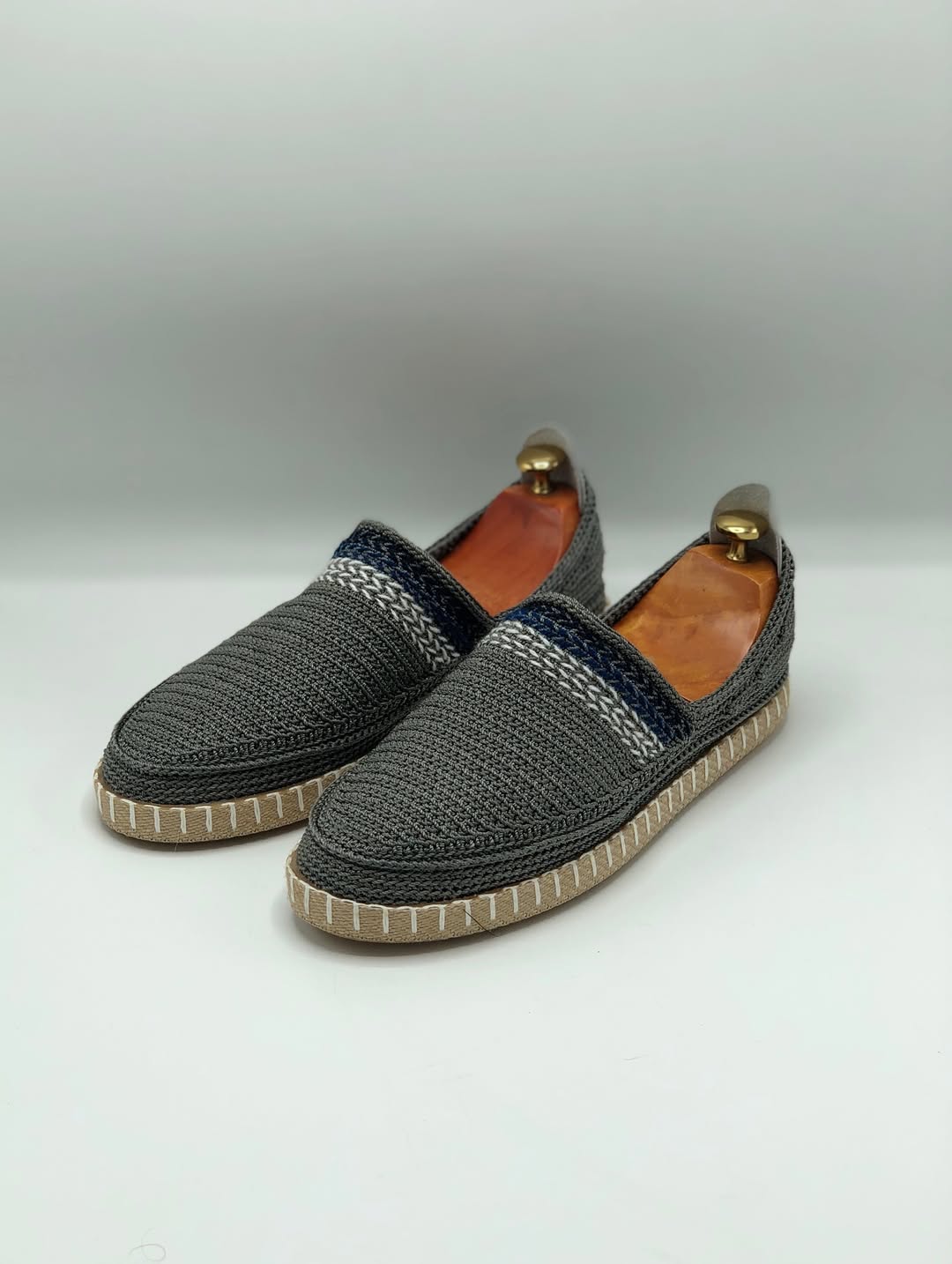 .گیوه مردانه دست دوز طوسی طرح دار نخ ابریشم کف دوخت