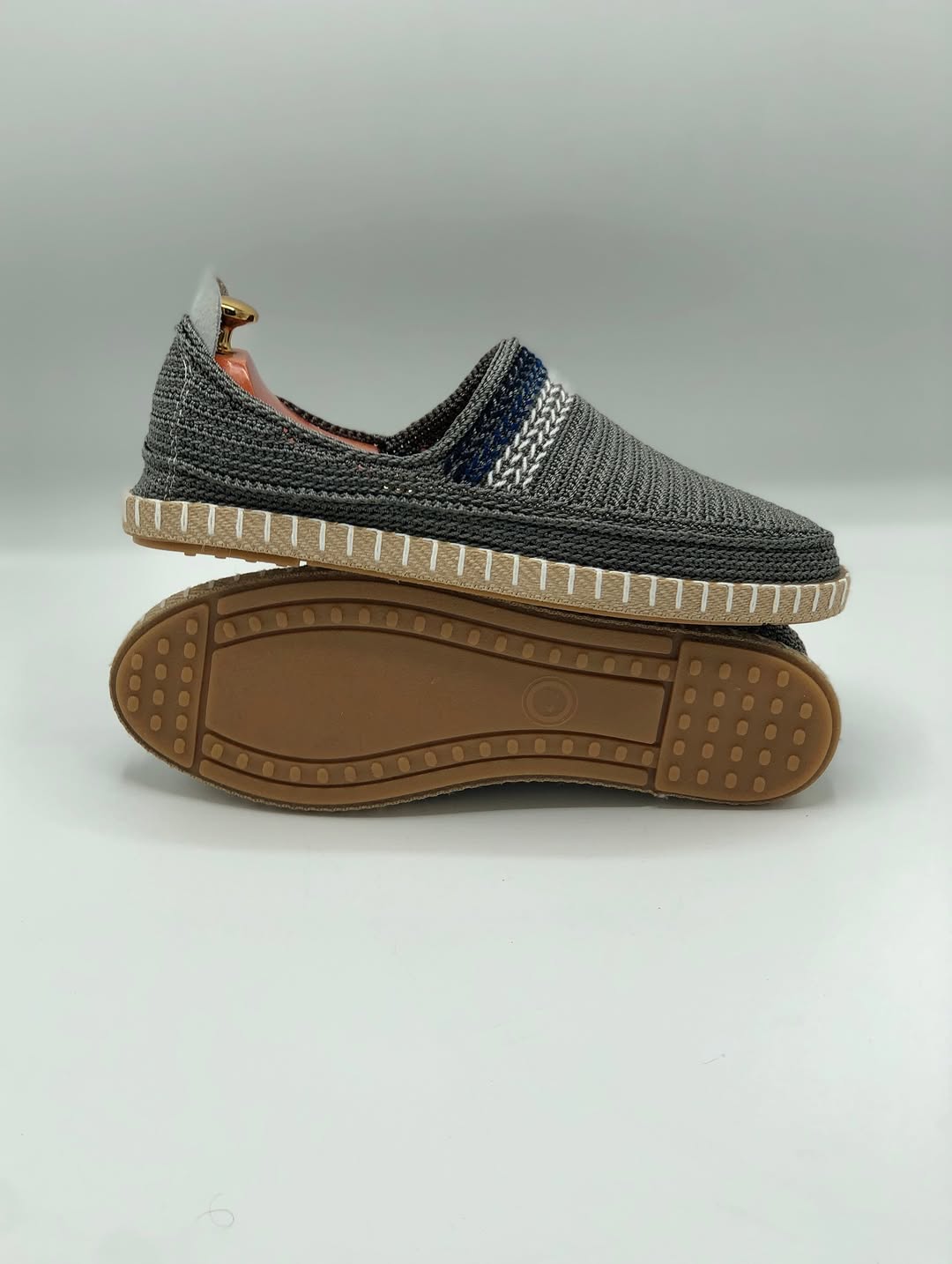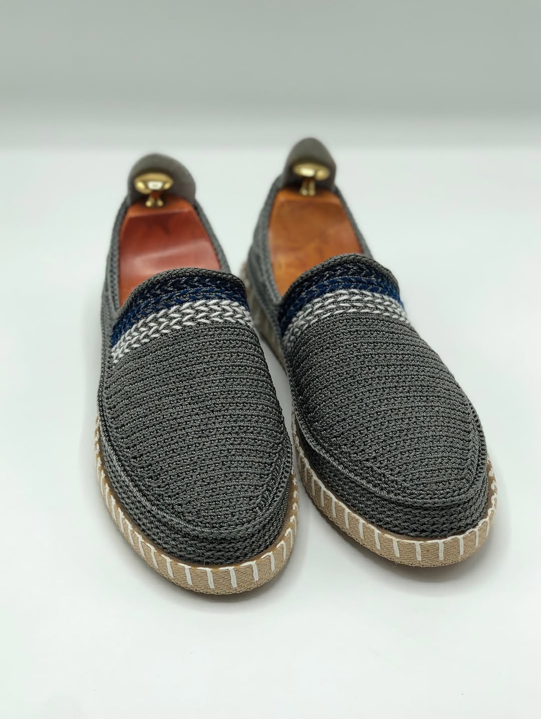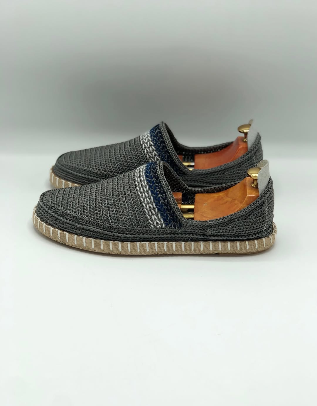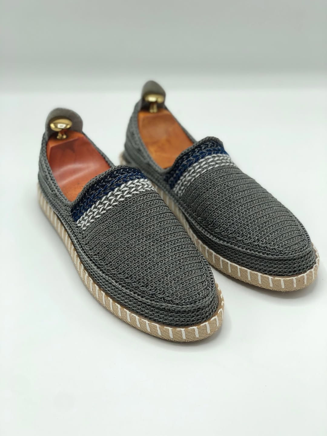 .گیوه مردانه دست دوز طوسی طرح دار نخ ابریشم کف دوخت